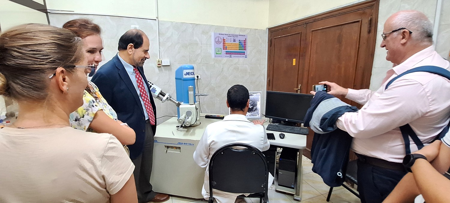 The visit comprised a tour of the Seed Pathology and Tissue Culture Laboratory, accredited according to ISO 17025:2017, in addition to the Electron Microscope Unit at Mansoura University. The delegation was introduced to the research and service capabilities available, which contribute to strengthening academic and research collaboration between the two universities.