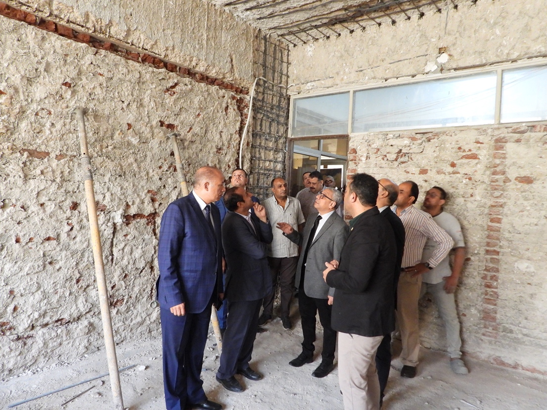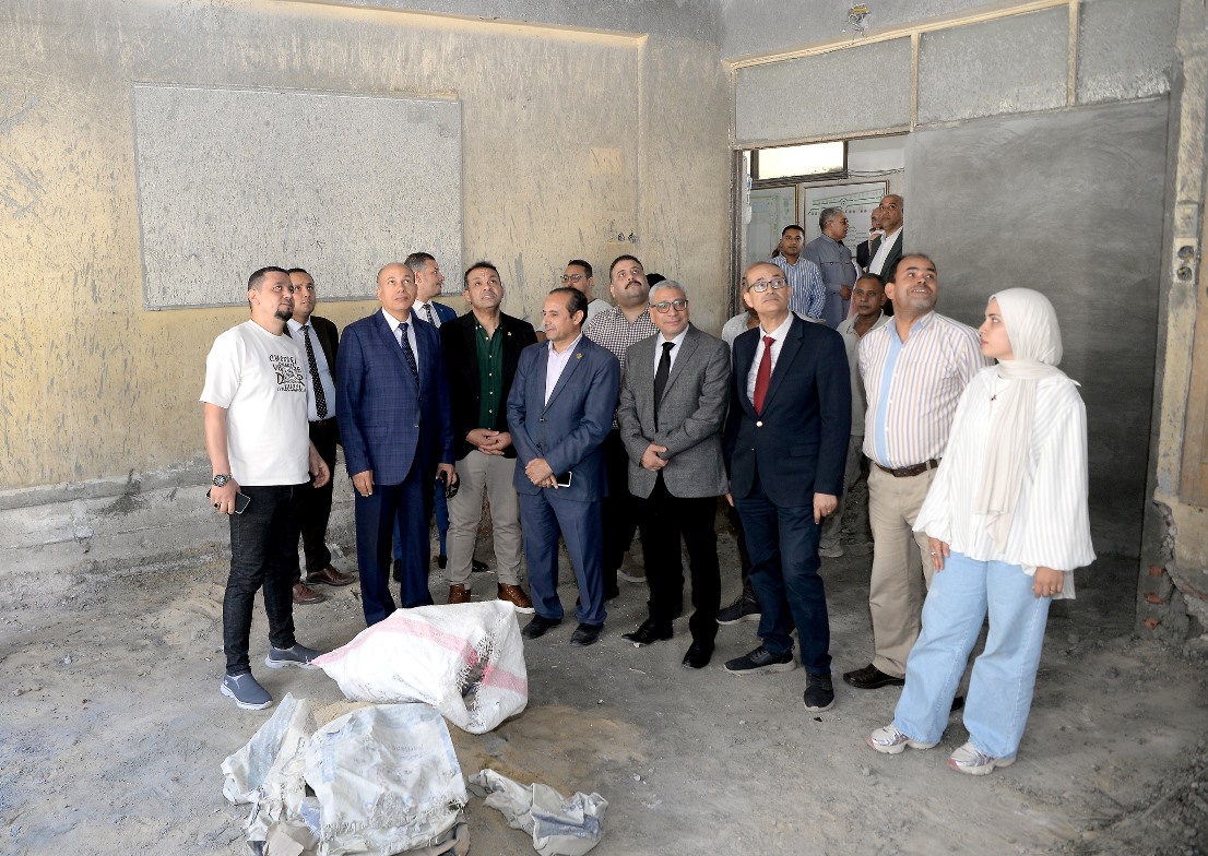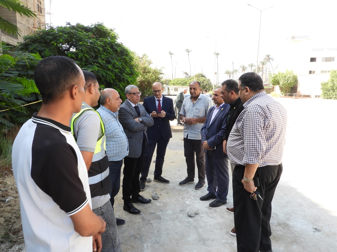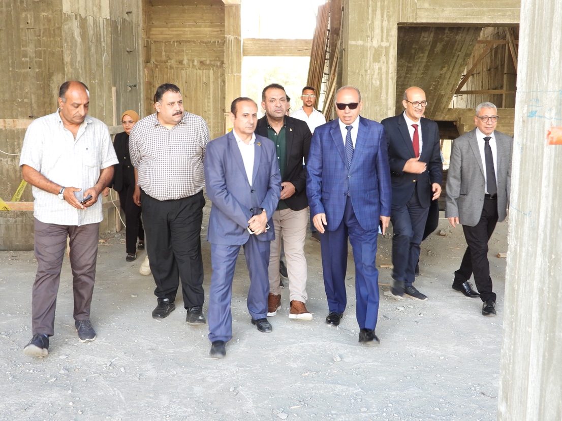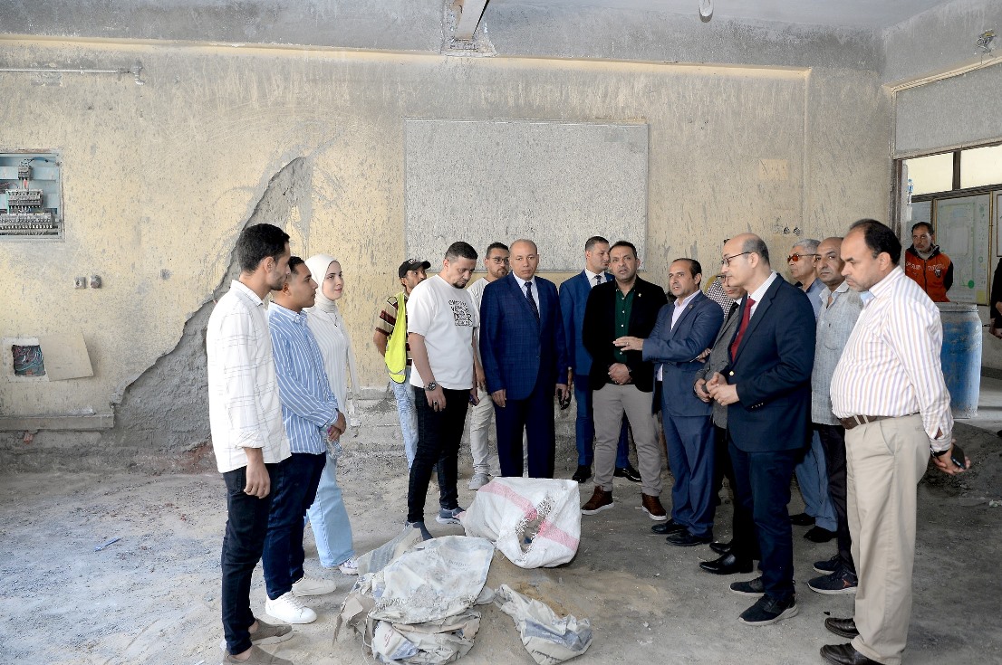 The inspection was attended by Mr. Saad Abdel-Wahab, University Secretary General, Prof. Dr. Sherif Masoud, Dean of the Faculty of Engineering and Chairman of the Board of the Center for Engineering Studies and Consultations, Prof. Dr. Mohamed Ali Shatta, Dean of the Faculty of Agriculture, Prof. Dr. Waleed Omar Nassar, Vice Dean for Postgraduate Studies and Research, Prof. Dr. Saleh Saada, Vice Dean for Education and Student Affairs, Mr. Medhat Ismail, Faculty Secretary, project managers, and representatives of the executing companies.