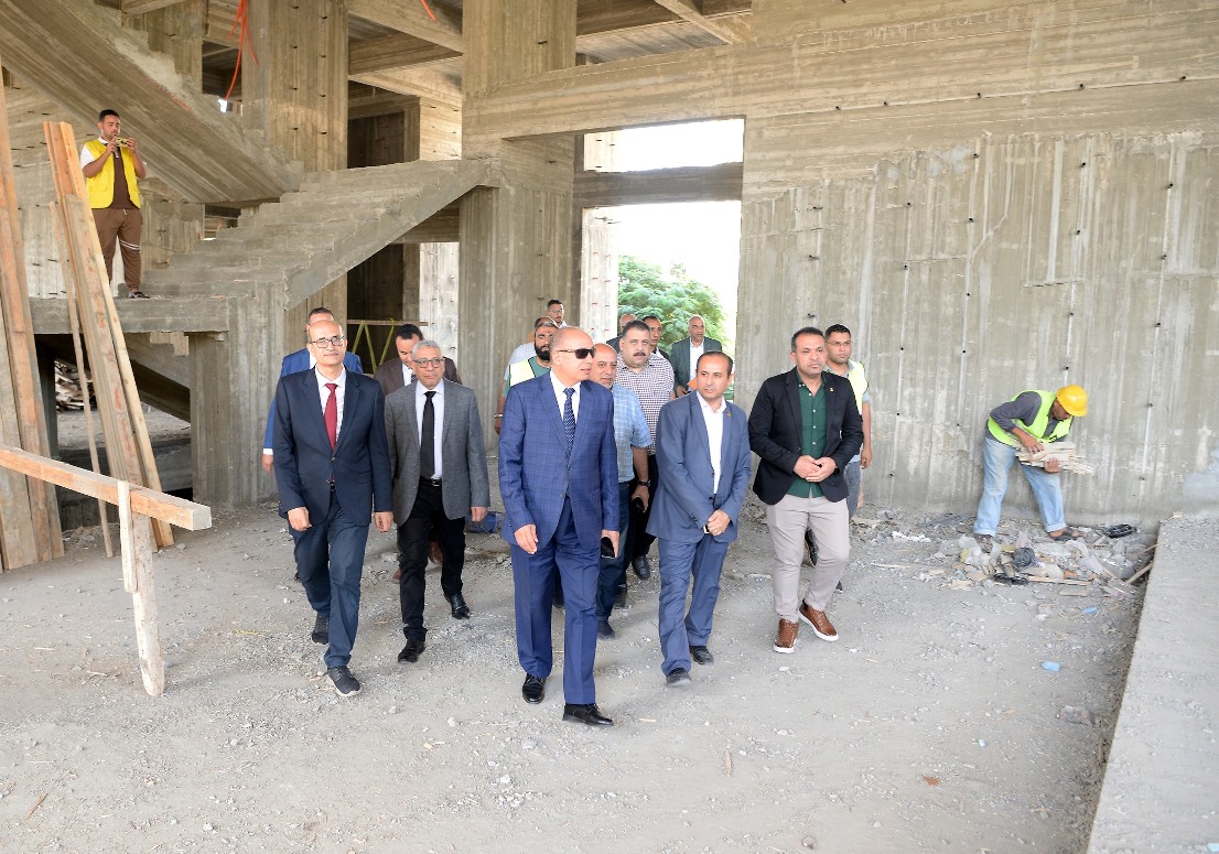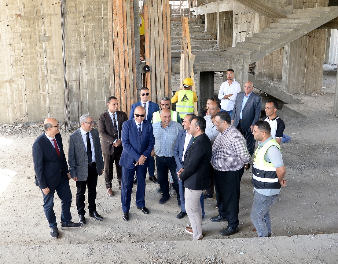 The tour began with the inspection of the G Building project at the Faculty of Agriculture, a central student services building constructed on an area of 1,250 square meters with seven floors. The building includes four lecture halls, 12 classrooms, 12 research and student laboratories, and a central exam hall, designed to meet the increasing needs of students and provide a modern learning environment that keeps pace with scientific developments in various agricultural fields.
