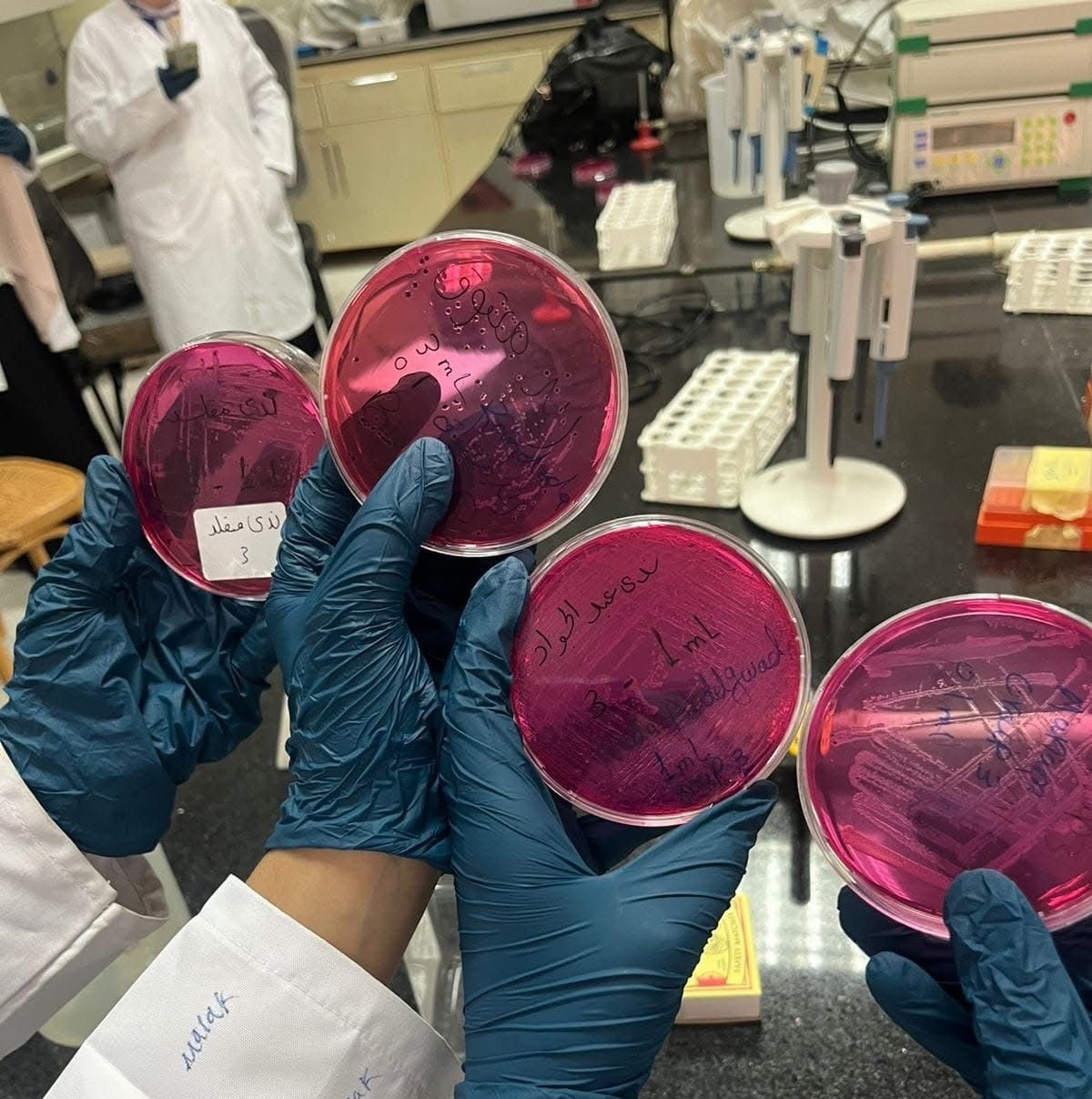 - تدريب عملي في معمل سلامة الغذاء وفسيولوجيا الميكروبات Food Safety علي Microbial Physiology الكشف عن ميكروب السالمونيلاSalmo nella في الغذاء باستخدام الطرق المزرعية وطريقة ال PCR