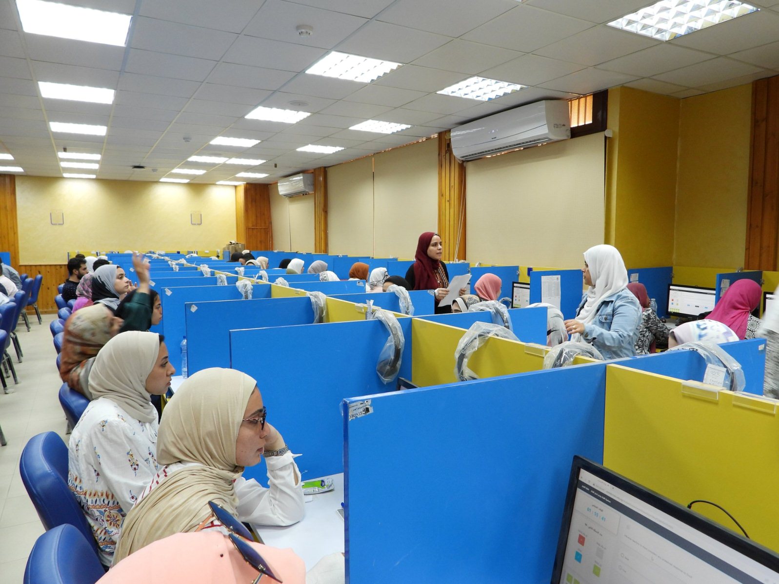 تفقد السيد أ.د. محمد على محمد شطا عميد الكلية والسيد أ.د. صالح السيد سعده وكيل الكلية لشئون التعليم والطلاب، سير امتحان طلاب برنامج نظم التغذية والذى عقد الكترونياً في اطار حرص كلية الزراعة على مواكبة التوسع في نشر ثقافة التحول الرقمي، ومتابعة الطلاب للتأكد من عدم وجود أى مشكلات أثناء تأدية الامتحان.