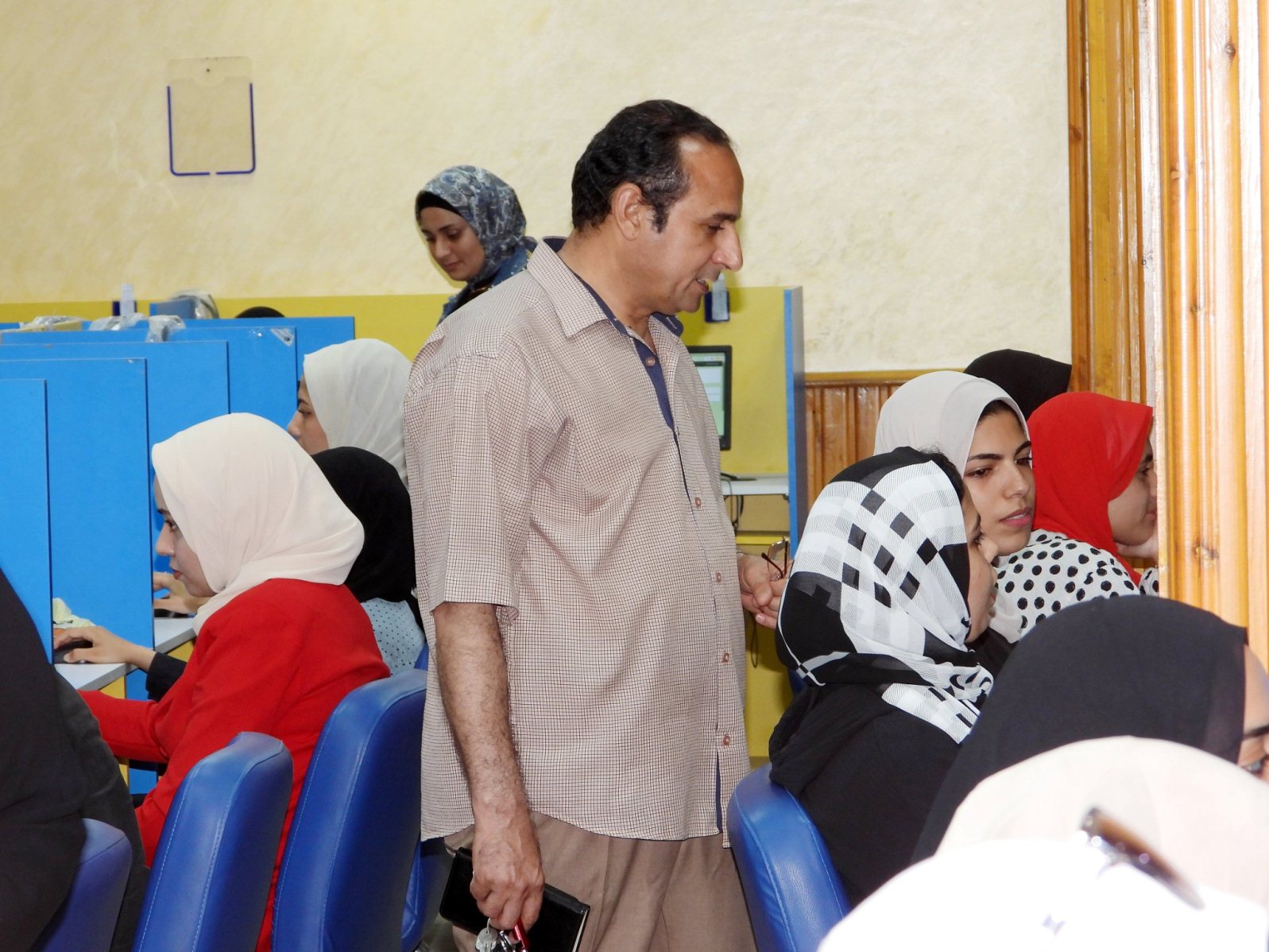 عميد الكلية يتفقد سير الامتحان الالكتروني لطلاب برنامج نظم التغذية
