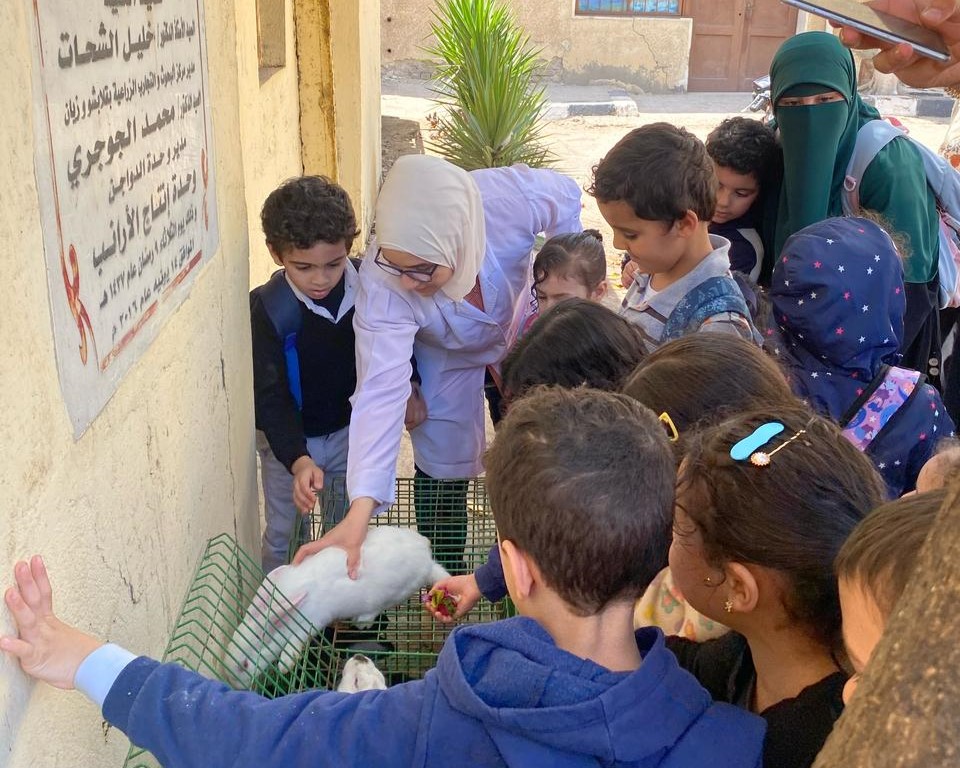 واختُتمت الجولة بزيارة وحدة إنتاج الأرانب، بإشراف من أ.د سارة فكري والأستاذ عبد القادر أحمد، وتم عرض مجموعة من الأرانب من سلالات كاليفورنيا والنيوزلندي، مع شرح مبسط حول فوائدها الغذائية وخصائصها.
