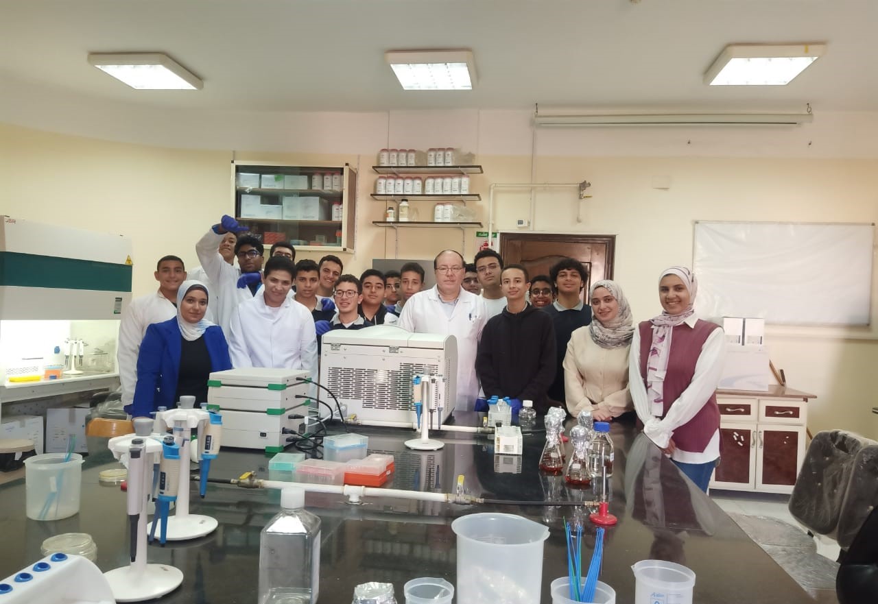 واختتمت الزيارة في معمل البيولوجيا التخليقية، حيث استقبل الطلاب أ.د وليد الشارود، مدير المعمل، وتعرفوا على الأجهزة والمستلزمات العلمية وطرق فصل المادة الوراثية وأنواع البكتيريا، مع قيامهم ببعض التطبيقات العملية بأنفسهم لتعزيز الفهم العملي.