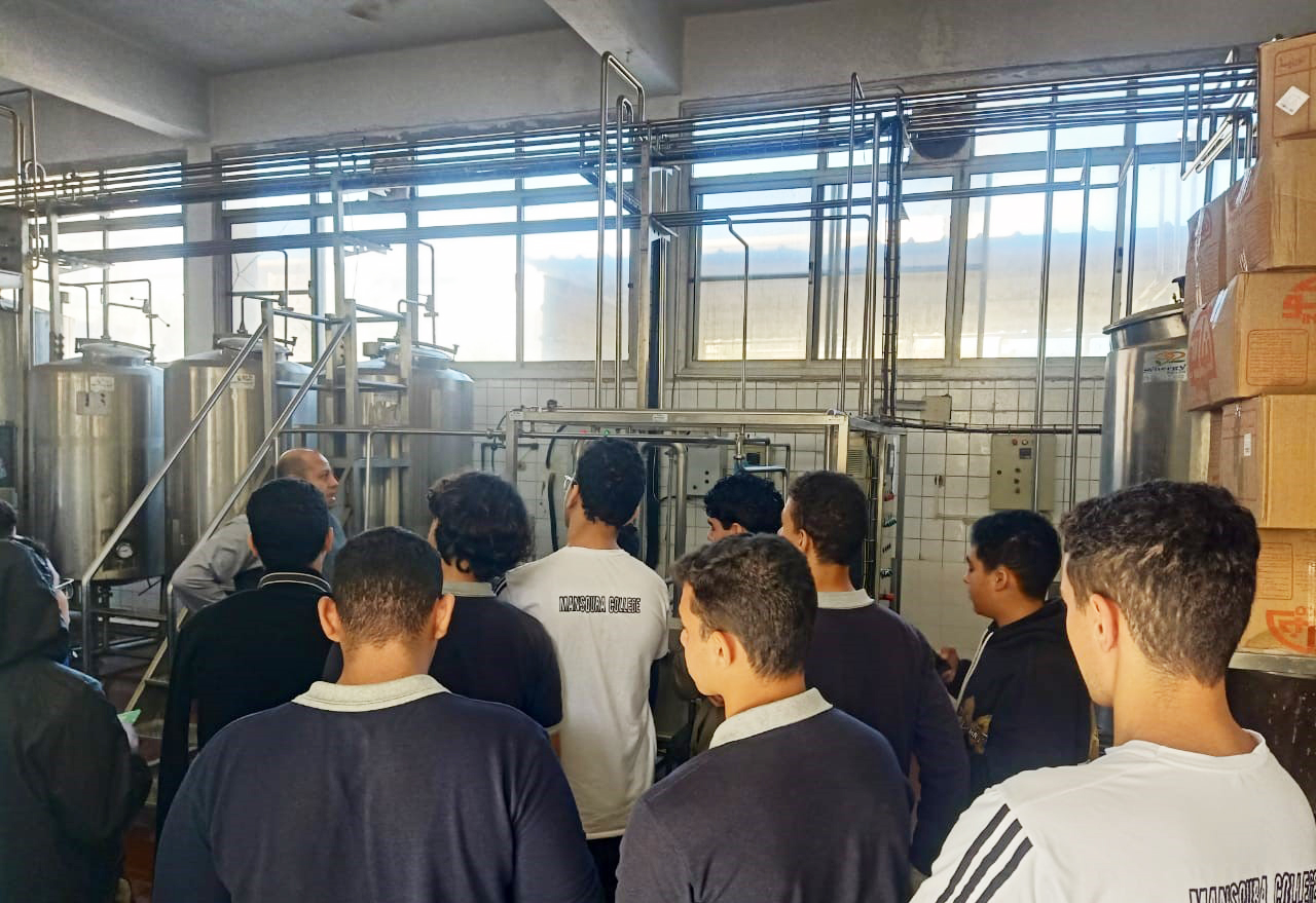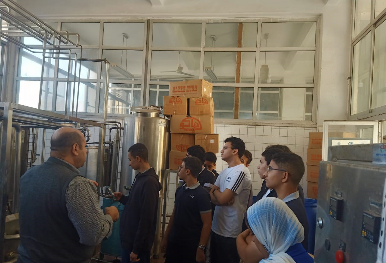 بدأت الزيارة في مصنع الألبان حيث استقبل الطلاب الأستاذ الدكتور محمد الدسوقي، رئيس مجلس قسم الألبان، والمهندس جمال، المدير الإداري للمصنع. اطلع الطلاب على مراحل تصنيع المنتجات اللبنية مثل الزبادي والجبن والقشطة والزبدة، وشاهدوا المعدات والخزانات وعمليات نضج المنتجات، وتمكنوا من تذوق الزبادي المصنوع من لبن جاموسي طبيعي 100٪، وسط جو من التفاعل والمرح والتقاط الصور التذكارية.