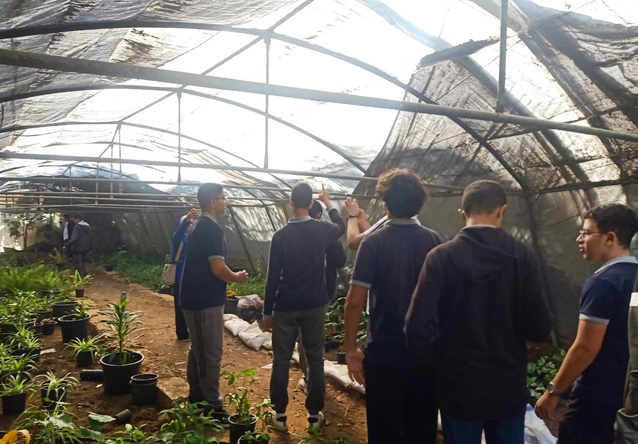 ثم انتقل الطلاب إلى مشتل الكلية، حيث شاهدوا مجموعة متنوعة من نباتات الزينة، الصبار، الورد، نباتات الظل، إلى جانب النباتات الطبية والعطرية والمستخدمة في الأطعمة والمشروبات مثل النعناع والروزماري والمرمرية. تم شرح طرق العناية بهذه النباتات وطرق تكاثرها بالبذور أو العقل أو الخلفات، كما تم إهداء المدرسة بعض النباتات كتعبير عن الود والترحيب.