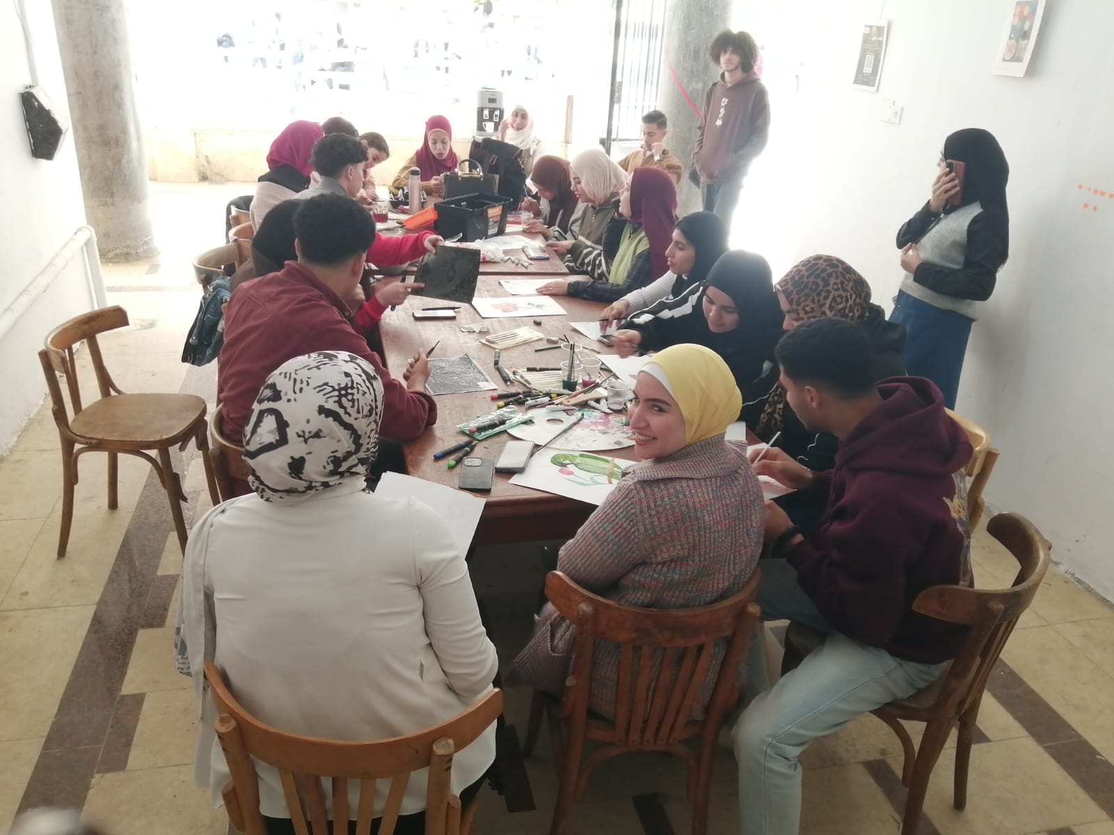 تضمنت الفعاليات ورشًا للرسم الفوري، والريزن، والجرافيك، بإشراف المدربين: إيمان جاب الله، شيماء خليفة، وابتسام صالح.